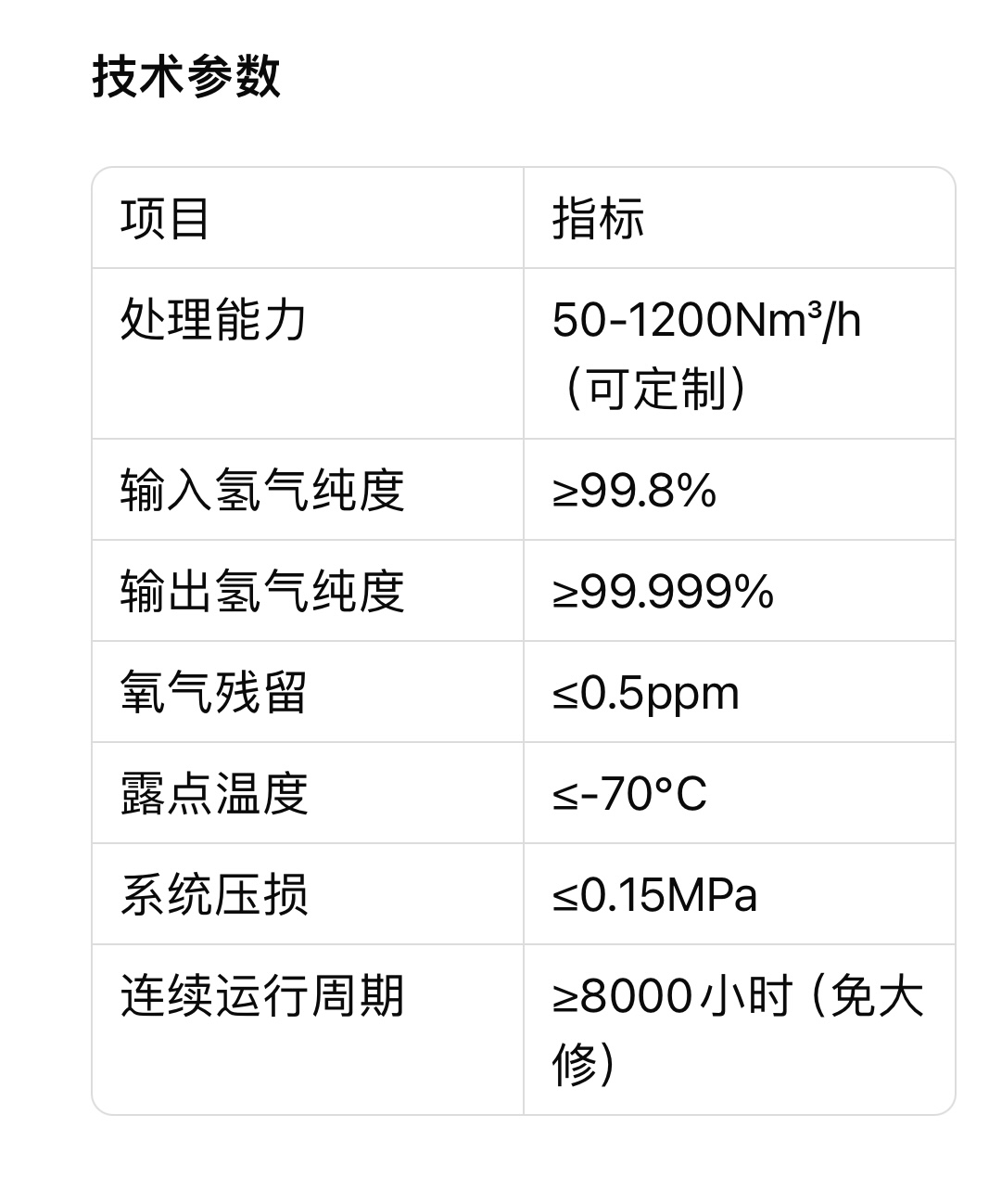输出指标:氧含量<0.5ppm。